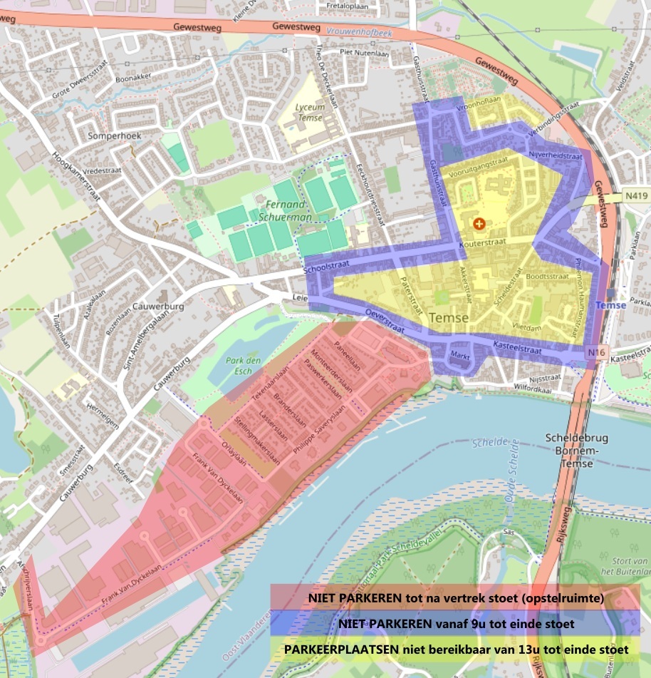 OPGELET: Aan het gemeentehuis/administratief centrum van Temse zijn een aantal parkeerplaatsen voor genodigden vrij gehouden. Niet alle parkeerplaatsen zijn hier ter beschikking.